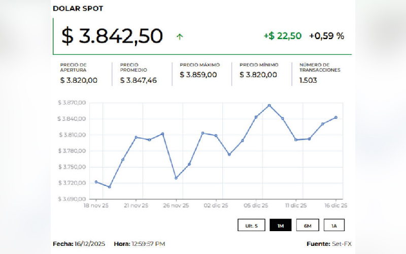 El dólar en Colombia subió con fuerza este jueves 18 de diciembre, alcanzando una Tasa Representativa del Mercado (TRM) de $3.866,77, lo que representa un